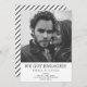Cet invitation de fiançailles moderne présente une simple typographie accrocheuse et votre photo de couple préférée. Retournez la carte pour révéler un motif en diagonale noir et blanc au dos de la carte.