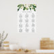 Élégant tableau de sièges à mariage floral avec des roses blanches peintes à la main et de la verdure, ainsi que les numéros de table dans un joli script manuscrit. Ce tableau de places mariage est parfait pour un mariage dans le jardin en été.
