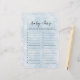 Ajoutez un peu de plaisir à votre baby shower à thème hivernal avec le jeu Simple Blue Snowflakes Winter Baby Items. Doté d'un design d'aquarelle mignon avec des flocons de neige bleus, ce jeu de baby shower capte l'ambiance chaleureuse et festive d'une fête "Baby It's Cold Outside". Simple mais engageant, il invite les clients à deviner des produits pour bébés tout en profitant du charme de la décoration hivernale. Parfait pour un jeu de baby shower décontracté et interactif, cette activité amusante fera divertir et rire vos invités. Que vous soyez l'hôte d'un petit rassemblement ou d'une fête plus grande, ce jeu inspiré des fêtes de neige apporte une touche délicieuse à vos festivités de baby shower.
