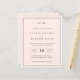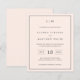 Faire-part de mariage économique simple avec un design moderne et élégant avec votre monogramme à deux lettres en haut, une mise en page audacieuse et vos détails entourés d'une fine bordure. Tous les éléments de conception sont en gris sur un arrière - plan rose pâle et peuvent être changés dans l'outil d'édition de conception. Un design chic et design qui conviendra à un couple minimaliste.