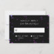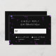 Des lumières scintillantes brillent en rose, violet et bleu translucide dans l'arrière - plan de ce modèle de carte de réponse sombre et glamour, avec un script blanc chic simple et des lettres sans serif. Changez le texte à votre propre place et cliquez sur "Customiser" pour modifier les polices et la couleur du texte.