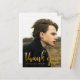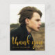 Simple typographie de remerciement en faux or avec photo complète sur le devant, et un doux message de remerciement avec une étoile de David et l'adresse de retour au dos de la carte postale.