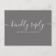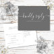 Une carte de réponse avec signature élégante avec vos informations en typographie chic. Le verso présente vos informations et une demande de chanson d'invité amusante. Conçu par Thisisnotme©