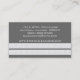 Carte de visite Simple Chic Stripes élégant et moderne avec une double bande de rayures blanches audacieuses sur un arrière - plan gris. Ce design minimaliste est parfait pour une variété de professionnels. Facile à customiser, il suffit d'ajouter les détails de votre entreprise dans les champs de texte fournis. Cliquez sur "Customiser" pour trouver d'autres options de personnalisation.