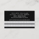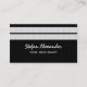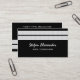 Carte de visite Simple Chic Stripes élégant et moderne avec une double bande de rayures blanches audacieuses sur un arrière - plan noir. Ce design minimaliste est parfait pour une variété de professionnels. Facile à customiser, il suffit d'ajouter les détails de votre entreprise dans les champs de texte fournis. Cliquez sur "Customiser" pour trouver d'autres options de personnalisation.