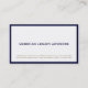 Laissez une impression durable avec notre simple Carte de visite de la frontière bleue de la Marine Blanche. L'avant de cette carte est ornée d'un simple arrière - plan blanc propre avec le nom de votre entreprise et les coordonnées essentielles élégamment présentées dans la typographie classique bleu marine et or, encadrée en bleu marine. Au verso, il y a de la place pour les détails individuels tels que votre nom, titre ou rôle, et les coordonnées personnelles. Ce carte de visite exhale le raffinement et le professionnalisme, ce qui en fait un outil puissant de réseautage et de représentation de votre marque.