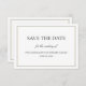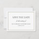 Simple typographie classique Enregistrer la carte de faire-part mariage de date. Mise en page horizontale avec bloc et texte de script élégant dans une mince bordure à double bande. Petit monogramme derrière. Pour ajuster la disposition, cliquez sur Personnaliser, sur Modifier le texte, puis sur et faites glisser les sections de texte vers les emplacements souhaités. Utilisez Cntrl pour sélectionner et déplacer plusieurs sections à la fois. Le monogramme au dos peut être supprimé en effaçant le champ de texte ou en supprimant l'entrée en mode Mise en page comme indiqué ci-dessus.