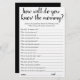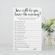 "Connais-Tu Bien Maman ?" Qui connaît le mieux la future mère ? Un simple baby shower de gardien ou de genre révèle un jeu de fête avec un script amusant et décontracté écrit à la main. Le design classique comprend une superposition de la typographie de citation à la main moderne. Pour d'autres couleurs ou produits correspondants, veuillez visiter le magasin JustFharryn Zazzle, ou contacter le concepteur, c/o Fharryn@yahoo.com Tous droits réservés. #bohochic #zazzlemade"
