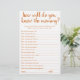 "Connais-Tu Bien Maman ?" Qui connaît le mieux la future mère ? Un simple baby shower de gardien ou de genre révèle un jeu de fête avec un script amusant et décontracté écrit à la main. Le design classique comprend une superposition de la typographie de citation à la main moderne. Pour d'autres couleurs ou produits correspondants, veuillez visiter le magasin JustFharryn Zazzle, ou contacter le concepteur, c/o Fharryn@yahoo.com Tous droits réservés. #bohochic #zazzlemade"