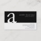 Un design carte de visite simple, élégant et professionnel avec la partie supérieure en noir. Votre lettre de monogramme apparaît dans une grande police qui s'écoule dans une partie inférieure de la carte qui n'est pas blanche. Votre nom et vos coordonnées apparaissent sur le côté droit de la carte. Le design simple noir et blanc crée une image très contrastée, puissante et professionnelle. Parfait pour les thèmes graphiques, professionnels, design, élégants, sérieux. Customisez-le immédiatement avec votre nom et vos coordonnées.