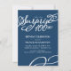 Cette invitation de 100e anniversaire surprise moderne et élégante de 4,5''' x 6,25''' comprend les mots "surprise 100e" en caractères de caractères blancs avec un design pivotant assorti dans le coin inférieur droit. Customisez cet invitation tendance avec le nom et les informations de fête et toute couleur arrière - plan de votre choix.