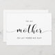 Une carte-cadeau simple et minimaliste pour écrire un message personnel et sincère à votre mère le jour de votre mariage. Entièrement personnalisable avec vos couleurs préférées (texte et arrière-plan). Vous pouvez ajouter un message au verso ou le laisser vide si vous préférez écrire votre message à la main plus tard.