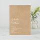 Un design élégant qui présente les noms des heureux couples dans un script élégant au-dessus de leurs détails spéciaux de sauvegarde de date sur un fond kraft rustique. Conçu par Thisisnotme©
