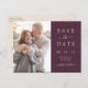 Cette élégante carte de faire-part de mariage simple comprend une photo pour personnaliser avec du texte crème sur fond burgundy. Le dos est taupe avec du texte gris.