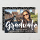 Cette faire-part moderne de graduation comporte une photo de votre diplômé avec une magnifique image typographique rendant le mot "Graduate" en blanc la superposant. J'ai utilisé une police moderne, audacieuse, manuscrite de ma collection pour créer ce mot. En dessous, les champs modèles ont été configurés pour que vous puissiez ajouter le nom, l'école et l'année de classe de fin d'études. Après cela, il suffit de cliquer sur le bouton "personnaliser" et de remplacer la photo du titulaire par la vôtre. Si vous le souhaitez, vous pouvez aussi changer votre police, position, taille... tout ce que vous voulez! Un ensemble de cercles blancs sur noirs de tailles variées couvre le dos de la carte faire-part. // Vous trouverez un bonus supplémentaire pour ceux qui ont des photos lumineuses ou lumineuses qui ont besoin d'un petit masque. J'ai ajouté un "graphique flou" qui est en gros un cercle qui est noir au milieu et qui s'évanouit jusqu'à rien dans le périmètre. Je l'ai ajouté pour faire apparaître les mots sur une zone plus légère du titulaire de place. Vous aussi devriez vous sentir libre de déplacer cette image selon vos besoins, et l'utiliser pour faire de VOTRE carte son meilleur aspect : SI vous en avez besoin. Il peut être agrandi considérablement et aussi repositionné à n'importe quel endroit sur la carte. // S'il vous plaît n'hésitez pas à tendre la main si vous avez des idées que vous n'êtes pas à l'aise d'essayer; je suis heureux de customiser ce design plus loin pour vous, si vous voulez. // Conçu par Melody Watson pour Paper Muserie. // Photo du support de Kelvin Quarles.