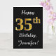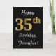 Ce simple design de carte d'anniversaire comporte le message "Joyeux 35ème anniversaire", avec le "35ème" ayant une apparence fausse or. Il comporte également un nom customisé et un arrière - plan noir. Il pourrait être donné à quelqu'un qui célèbre son trente-cinquième anniversaire.