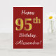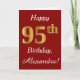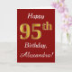 Ce simple design de carte d'anniversaire comporte le message "Joyeux 95ème anniversaire", avec le "95ème" ayant une apparence fausse or. Il porte également un nom personnalisé et un arrière - plan rouge foncé. On pourrait le donner à quelqu'un qui célèbre son quatre-vingt-quinzième anniversaire.