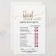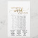 Ce simple jeu de recherche de mots mariage de calligraphie or est parfait pour une douche nuptiale chic. Le devant de la carte de jeu comporte "il a dit qu'elle a dit", ce qui est un quiz amusant sur la mariée et le marié. Le verso de la carte contient un mot de recherche avec des mots et des phrases mariages. Le design romantique classique présente une typographie de feuille d'or et un coeur doré. Personnalisez la carte de jeu avec le nom de la mariée et la date de la douche nuptiale. Remarque : Ce design ne comporte pas de véritable feuille d'or. C'est un graphisme de haute qualité fait pour ressembler à du papier doré.