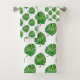 Green monstera leaf pattern on white Bath Towel Set. Elegant simple design for everyone!