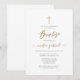 Célébrez le jour spécial de votre enfant avec notre Invitation Simple De Baptême Espagnol Or. Cette invitation de baptême élégante et minimaliste présente un magnifique design de calligraphie manuscrite avec des accents dorés, parfait pour un niño ou une niña. Idéal pour un baptême moderne et religieux, il capture l'essence d'un baptême traditionnel avec une touche contemporaine.