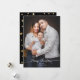 Simple Joyeux Noël calligraphie superposition carte photo. Le dos montre des étoiles faux or sur un arrière - plan noir. Vous pouvez supprimer les étoiles et/ou modifier la couleur de l'arrière - plan à tout ce que vous voulez en cliquant sur le bouton Personnaliser, puis en cliquant sur la personnaliser plus loin. Vous avez besoin d'aide pour votre conception/personnalisation ? Contactez le concepteur à l'adresse info@lemontreecards.com