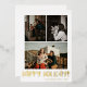 Cette simple fête joyeuse verticale 3 photo | Carte de vacances en feuille d'or est parfait pour votre accueil de Noël de luxe moderne. La police festive décontractée mais classique est faite avec de l'or pressé de qualité supérieure en papier d'aluminium, permettant un look rustique minimaliste brillant. Le Lettering se marie bien avec les photos d'hiver de boho foncé, et la disposition minimale de base donne une excellente occasion de laisser votre famille scintiller !