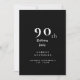 90e anniversaire de l'homme Simple Invitation. Invitation à la fête d'anniversaire. Simple. Noir. Dîner et Boissons.
