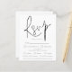 Simple Mariage noir blanc QR Code choix de repas RSVP. Un rapport qualité-prix BUDGET alternative sur une taille plus petite 4,5 x 5,6" semi-brillant poids 110lbs, qui est d'une épaisseur similaire à une carte postale (cependant ne convient pas à l'utilisation comme carte postale.) VEUILLEZ NOTER qu'il y a UN par feuille Une typographie stylisée en noir pour le titre principal RSVP complétant le reste du texte que vous pouvez facilement personnaliser. Ajoutez un code QR à votre site web mariage à l'arrière afin que vos invités aient la possibilité de répondre par la poste ou en ligne.