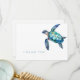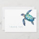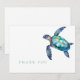 Carte de remerciements personnalisée. Nom sur le dos. Aquarelle simple. Tortue tropicale. Texte turquoise.