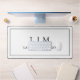 Tapis de bureau simple, design noir et blanc moderne et minimaliste, avec monogramme et nom d'entreprise à l'avant entouré d'une bordure. Tous les éléments et couleurs de conception peuvent être modifiés dans l'outil d'édition de conception.