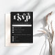 This simple modern wedding RSVP invitation has an elegant, decorative serif font and classic standard typographic fonts (Futura and Garamond Italic).
