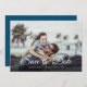 Cette photo de script moderne enregistrer la carte de date comprend votre photo spéciale superposée avec un script enregistrer la date au-dessus de vos noms, date et lieu en texte blanc. Vous pouvez customiser l'inverse à votre couleur préférée et ajouter des informations supplémentaires. Conçu par Thisisnotme©