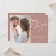 Un design élégant et moderne présente un script de typographie Save The Date et votre photo préférée contre un arrière - plan rose. Un seul botanique le décolle parfaitement. Idéal pour annoncer votre prochain mariage de manière à la mode et minimaliste. Customisez facilement les détails importants avant et arrière, ainsi que votre meilleure photo de choix.