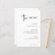 Ce menu élégant, noir et blanc pour le dîner est simple et minimaliste, mais très élégant grâce à l'écriture manuscrite moderne et la disposition propre.