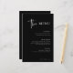 Ce menu élégant, noir et mariage, est simple et minimaliste mais très élégant grâce à son écriture manuscrite blanche et moderne et à sa disposition propre.