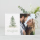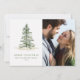 Cette carte de Noël simple et moderne présente une élégante aquarelle originale peinte en couleur neige sur le sapin de Noël à gauche et votre photo à droite. Entrez votre nom de famille, vos prénoms et votre photo. Le dos a un message de vacances simple.