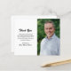 Carte de remerciements funéraire moderne à budget noir et blanc avec un design simple et minimaliste avec votre photo préférée du défunt avec votre message personnalisé à gauche. "Merci" et le nom du défunt sont dans un élégant script de brosse.