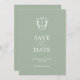 Annoncez vos fiançailles avec cette carte moderne de save the date. Elle présente un mélange de typographie classique et de script en blanc sur un fond vert sauge uni. Entrez le monogramme des mariés au centre d'un blason bleu pâle. Toutes les couleurs peuvent être personnalisées pour s'adapter à votre palette de couleurs de mariage. Utilisez les champs du modèle pour personnaliser avec votre nom et la date du mariage. Choisissez parmi une variété de papiers de qualité. Mon préféré pour celui-ci est le papier nacré. Mélangez et assortissez avec beaucoup de mes créations pour créer votre thème de mariage personnalisé. Un design sophistiqué et élégant pour les mariages et les annonces de fiançailles. Pour voir la suite de papeterie de mariage assortie, visitez www.zazzle.com/dotellabelle