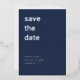 Simple Navy Blue Enregistrer la date Foil Invitation, s'il vous plaît personnaliser le devant de la Date Enregistrer avec le nom du couple se mariant, la date du mariage et l'emplacement du mariage (ou autre libellé de votre choix), en utilisant le modèle de personnalisation en ligne avant de commander. Ce design Save the Date présente un beau texte en feuille métallique sur le devant, dans un style simple et minimaliste. L'arrière - plan pour l'avant de la carte est bleu marine ; l'arrière de la carte est également bleu marine. Cette conception est rapide et facile à personnaliser et peut être utilisée pour un mariage ou un autre type d'événement de célébration planifié comme l'anniversaire, l'anniversaire ou la réunion de famille.