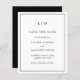 Economisez la date avec un design moderne et élégant avec votre monogramme à deux lettres en haut et vos détails mariages entourés d'une fine bordure. Tous les éléments de conception sont en noir et blanc et peuvent être modifiés dans l'outil d'édition de conception. Un design chic et design qui conviendra à un couple minimaliste.