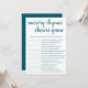 Baby shower de quiz de rime de pépinière ou de sexe révéler jeu de fête (avec les réponses ci-dessous) avec un script amusant et décontracté écrit à la main. Le design classique comprend une superposition de la typographie de citation à la main moderne. RÉPONSE CLÉ : Un Diamant, Petit Jack Horner La cuillère, 3 souris aveugles, Tous les rois chevaux et hommes, Les garçons, 3 Sacs pleins, Petite Dame dans une chaussure, Mary Mary Bien au contraire, Petit Agneau, Chanter, Araignée, Jill, Le soleil, Les servantes dans la cuisine Pour d'autres couleurs ou des produits assortis, visitez le magasin JustFharryn Zazzle, contactez le concepteur, c/o Fharryn@yahoo.com Tous droits réservés. #bohochic #zazzlemade