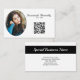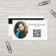 Ce design carte de visite est doté d'une photo et d'un espace réservé QR Code avec des modèles pour des détails professionnels. Remplacez la photo de l'espace réservé par votre photo au format vertical à l'avant et votre code QR à l'arrière. Remplissez les champs de personnalisation ou cliquez sur personnaliser pour sélectionner un style de police, une taille et une couleur que vous voulez.La photo de l'espace réservé est gracieusement offerte par pixabay.com.