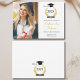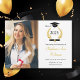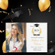 Célébrez dans le style avec cette carte de faire-part de graduation simple et élégante. Ajoutez votre photo et vos détails préférés. Design propose une classe de 2025 en écriture élégante avec l'illustration de la couronne de laurier, un haut casquette et un diplôme. Photo du diplômé avec son nom et ses détails dans un mélange de typographie noir et or sur un arrière - plan blanc propre. Le dos de la carte a une réplique de la conception de la couronne de laurier. Facile à customiser. Félicitation !