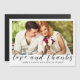 Merci à vos invités mariages dans le style avec cette photo personnalisée moderne carte magnétique. Ce modèle design simple mais élégant présente votre photo sur le devant bordée de blanc avec les mots "Amour et Merci" en script noir et vos noms avec date mariage à personnaliser. Félicitations pour votre mariage et nos meilleurs voeux ! Conçu par l'artiste Susan Coffey.