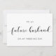 Une carte cadeau simple et minimaliste pour écrire un message personnel et sincère à votre futur mari le jour de votre mariage. Entièrement personnalisable avec vos couleurs préférées (texte et fond). Vous pouvez ajouter un message au verso, ou le laisser vide si vous préférez écrire votre message à la main plus tard.