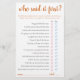"Qui l'a dit en premier ?" Un simple baby shower de gardien ou de genre révèle des devinettes de fête avec un script amusant et décontracté écrit à la main. Le design classique comprend une superposition de la typographie de citation à la main moderne. Pour d'autres couleurs ou produits correspondants, veuillez visiter le magasin JustFharryn Zazzle, ou contacter le concepteur, c/o Fharryn@yahoo.com Tous droits réservés. #bohochic #zazzlemade