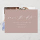 Le Simple Script Dusty Rose Save The Date Postcard combine élégamment un design moderne minimaliste avec un script charmant dans une teinte rose poussiéreuse douce. Il est parfait pour capturer l'essence des mariages du printemps et de l'été. Avec une option pour votre photo préférée, il incarne une belle vibe boho - faites-moi savoir si vous avez besoin d'aide avec la personnalisation!