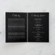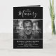 Customisez ce programme funéraire simple et moderne avec votre propre photo et texte pour créer un hommage spécial à votre être aimé. Un programme "In Loving Memory" avec un arrière - plan noir traditionnel avec typographie blanche. Sur la couverture, une photo de votre être aimé, son nom, ses dates, le lieu du mémorial et la date de l'événement. A l'intérieur se trouve la nécrologie et l'ordre du service ; et à l'arrière, vous avez la possibilité d'ajouter deux autres photos, une note de remerciement et le lieu de la veillée. Le texte est une combinaison de script de calligraphie manuscrit et de police serif de curviture. Tout le texte est facilement modifiable. Si vous avez besoin d'aide pour customiser ceci, s'il vous plaît envoyez-moi un message en utilisant le bouton ci-dessous et je serai heureux de vous aider.