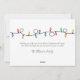Une carte de Noël festive, amusante et simple avec des cordes de lumières de Noël colorées sur le devant et le dos. L'avant affiche "Joyeux Noël" dans la typographie de script, avec votre nom de famille ou votre nom d'entreprise dans une police simple. Vous pouvez également choisir de changer la couleur arrière - plan pour mieux adapter votre thème de vacances. Ce design est parfait pour répandre la joie des vacances avec son esthétique vibrante et joyeuse, et pourtant il est également assez minimaliste. À l'arrière, vous pouvez ajouter une note personnelle ou la laisser vide pour un message manuscrit. Le message principal peut être customisé à "Joyeuses Fêtes" ou "Bonnes Fêtes" si vous préférez. Cette carte est idéale pour envoyer des souhaits chaleureux à des proches ou pour l'utilisation par les entreprises, capturant l'esprit de la saison de manière animée et colorée. Les polices et les lignes sont de couleur gris foncé, pas noir foncé. Joli Festif Coloré Festive Festive Lumières Joyeux Carte de Noël. Disponible sous forme de carte imprimée ou de carte numérique téléchargeable que vous pouvez envoyer par e-mail ou avoir imprimé localement !