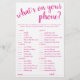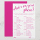 Simple "What's on Your Phone" douche/carte de points de jeu avec un script décontracté et amusant écrit à la main. Le design classique comprend une superposition de la typographie de citation à la main moderne. Pour d'autres couleurs ou produits correspondants, veuillez visiter le magasin JustFharryn Zazzle, ou contacter le concepteur, c/o Fharryn@yahoo.com Tous droits réservés. #bohochic #zazzlemade